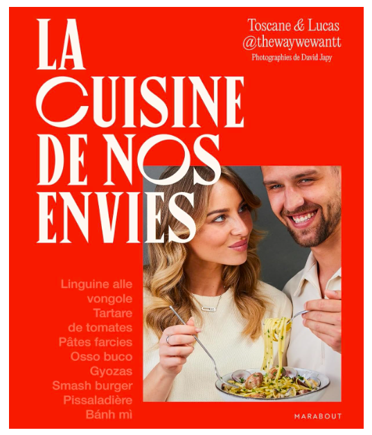 Connus sur TikTok pour leur rendez-vous culinaire « Ma vie, on mange quoi ?« , Lucas et Toscane, alias, The Way We Want, transforment l’envie du moment en recettes du quotidien. Avec La cuisine de nos envies, le duo partage une cuisine spontanée, moderne et généreuse. Ainsi, chaque plat naît d’une inspiration, d’un voyage ou simplement d’un produit du placard. On y retrouve leurs recettes iconiques, mais aussi de nombreuses créations inédites. Des linguine alle vongole au bœuf Wellington, en passant par des assiettes ultra gourmandes, tout est pensé pour se faire plaisir.