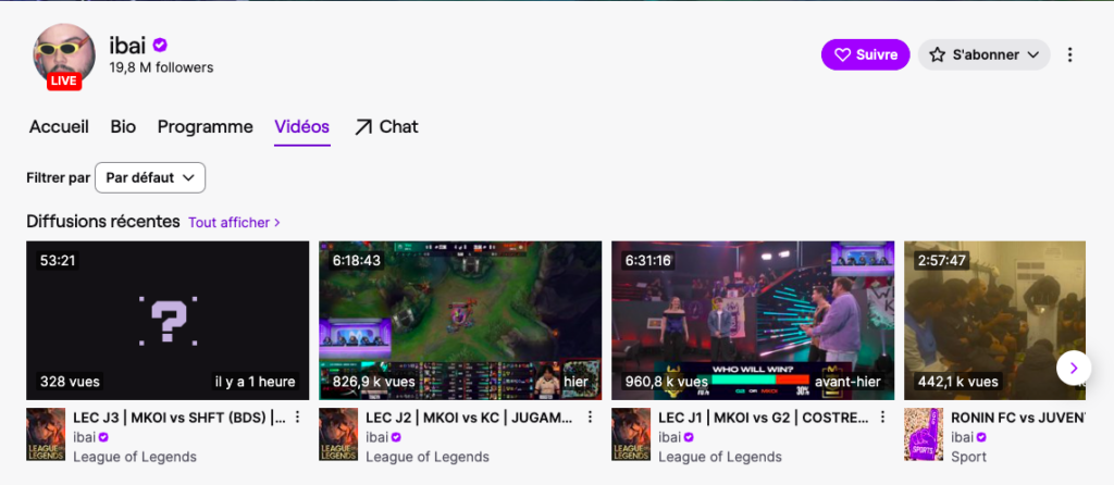 Véritable figure de proue de l’Esport et du commentary sur Twitch, Ibai commence à se faire connaître en devenant le commentateur d’une célèbre ligue d’esport espagnol. Propulsé au sommet, il multiplie les grands événements, notamment avec la diffusion de la Copa America 2021 sur Twitch ou avec le premier interview de Lionel Messi après son entrée au PSG. Il explose le record d’audience le 25 juin 2022 à l’occasion d’un événement de boxe, en comptabilisant un pic à plus de 3M de viewers. La chaîne Twitch de Ibai.