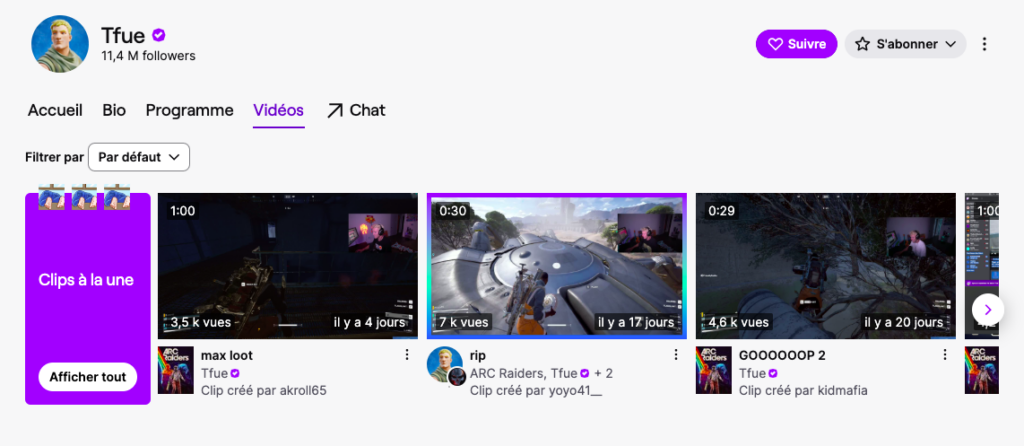 Tfue est l’un des plus grands noms dans la communauté Fortnite, et est souvent décrit comme l’un des meilleurs joueurs. Spécialisé dans le gaming, il propose une qualité de jeu sans équivoque, et réussit à séduire des millions de viewers sur Twitch en multipliant les vidéos sur des jeux différents tels que Warzone ou Minecraft. Il devient en 2021 le deuxième créateur à atteindre les 10 M d’abonnés sur Twitch, après Ninja. La chaîne Twitch de Tfue.