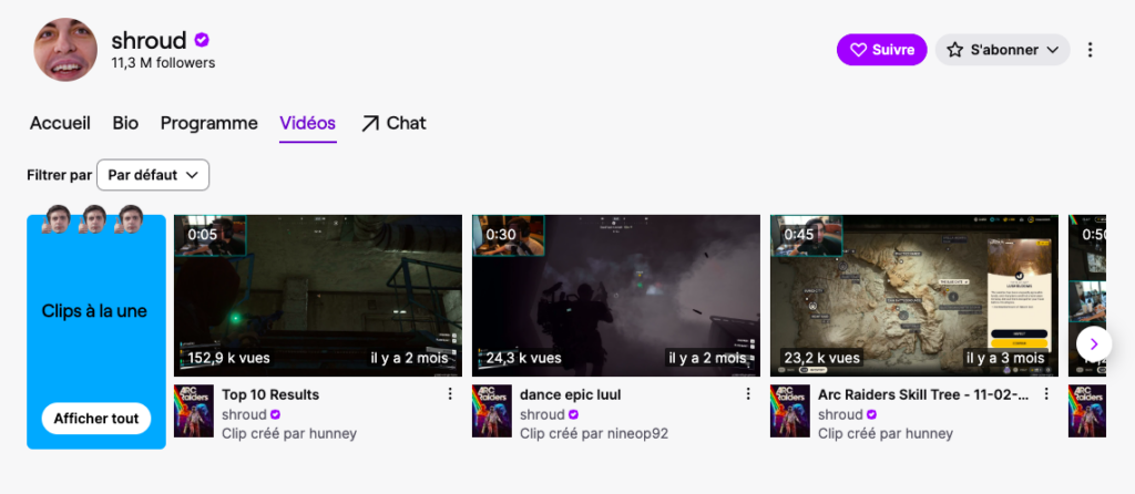 Shroud est un ancien joueur professionnel de Counter Strike, plusieurs fois sur le podium de grandes compétitions d’esport. Il stream sur Twitch sur différents jeux, tels que Valorant, Counter Strike, ou PUBG. Ses vidéos comptabilisent régulièrement plusieurs centaines de milliers de viewers, et la qualité de ses dernières lui a valu d’être récompensé du titre de créateur de contenu de l’année au Game Awards de 2019. La chaîne Twitch de Shroud.